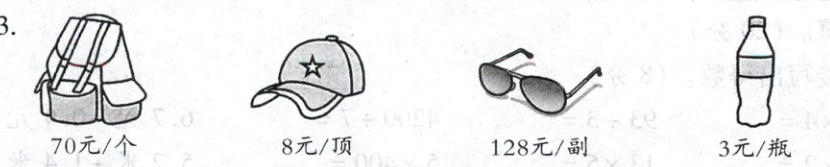 (1)程老师买了一副太阳镜和4顶帽子,一共花了多少元?(4分)