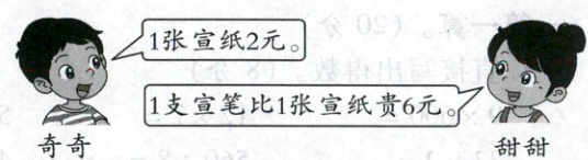 (2)甜甜给了售货员100元,买了一些宣纸,找回32元,她买了多少张宣纸?(5分)