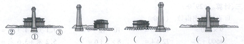 7. 下面右边的三张照片分别是从哪个位置拍的?把相应的序号填在括号里。