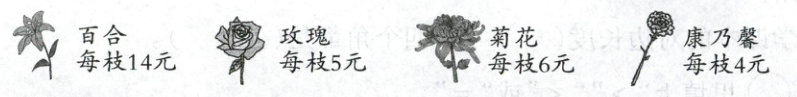 (1) 张叔叔买了30枝玫瑰和1枝百合,一共花了多少元?(4分)