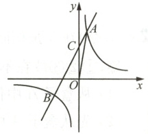 Plus关键点拨:本题考查反比例函数与一次函数的交点问题,待定系数法求函数表达式,求表达式的关键是理解交点的横、纵坐标即为方程组的解。本题求解面积的关键是求出直线与坐标轴的交点坐标,即点C的坐标。