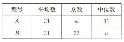 (2)A,B两种型号的平均数相同,但B型号的众数和中位数都高于A型号,所以B型号的续航性能更好. (7分)