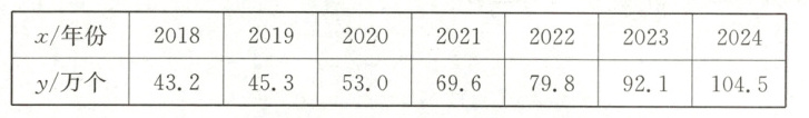22 (6分)新一轮科技革命和产业变革深入发展,科技创新是建成科技强国的重要保障.学校兴趣小组成员收集了我国2018~2024年发明专利申请授权数,整理数据如下表(单位:万个,精确到0.1):