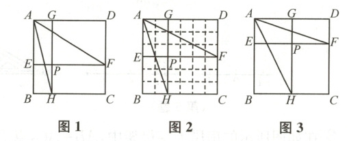 28 (12分)问题:如图1,P为正方形ABCD内一个动点,过点P作$EF// AD$,$GH// AB$,矩形PHCF的面积是矩形PGAE面积的2倍,探索$\angle FAH$的度数随点P运动的变化情况.