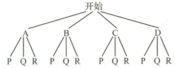 共12种等可能的结果,其中转盘停止转动后甲盘指针落在C区域且乙盘指针未落在Q区域的结果有2种,即CP和CR,