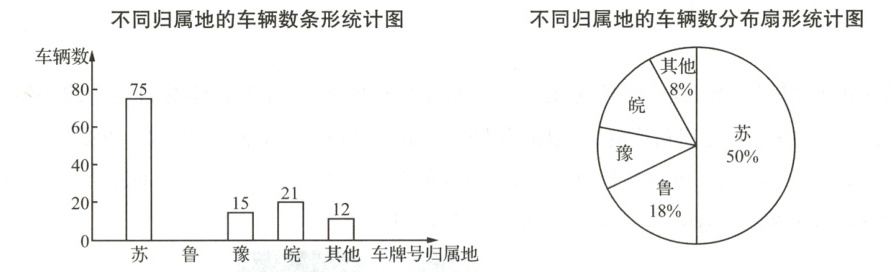 (2)车牌号归属地为“鲁”的车辆数为$150×18\% = 27$,