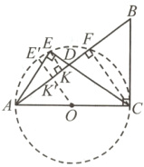 解法二:在Rt△ABC中,AC=4,BC=3,则$AB=\sqrt{AC^2+BC^2}=5,$过点E作EH//BC交AB于点H,EK⊥AB于点K。因为EH//BC,所以△CDB∽△EDH,所以$\frac{CD}{DE}=\frac{CB}{EH},$所以当EH取最大值时,$\frac{CD}{DE}$取最小值。因为EH//BC,所以∠EHK=∠B。又∠EKH=∠BCA=90°,所以△EKH∽△ACB,所以EH:EK=AB:AC=5:4,所以$EH=\frac{5}{4}EK。$因为点D在运动过程中,始终保持AE⊥CD,所以点E在以AC的中点O为圆心,$\frac{1}{2}AC$长为半径的圆上,当点E,K,O共线,即点E在点E′的位置时,EK取最大值。因为$sin∠BAC=\frac{OK′}{OA}=\frac{BC}{AB}=\frac{3}{5},$OA=2,所以$K′O=\frac{6}{5},$所以$E′K′=OE′-K′O=2-\frac{6}{5}=\frac{4}{5},$所以EH最大为$\frac{5}{4}E′K′=1,$此时$\frac{CD}{DE}=\frac{3}{EH}=3,$所以$\frac{CD}{DE}$的最小值是3。