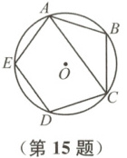 15 如图,正五边形$ABCDE$内接于$\odot O$,连接$AC$,则$\angle ACD$的度数为