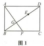 游戏1 折出对角线$BD$,将点$B$翻折到$BD$上的点$E$处,折痕$AF$交$BD$于点$G$.展开后得到图1,发现$F$恰为$BC$的中点.