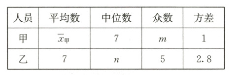 (2)甲的射击成绩比较稳定,理由如下:因为样本中方差$s_{甲}^2 = 1 < s_{乙}^2 = 2.8$,所以甲的射击成绩的方差较小,成绩比较稳定.