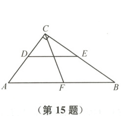 15 如图,在$Rt\triangle ABC$中,$\angle ACB=90°$,CF是边AB上的中线,$DE$是$\triangle ABC$的中位线,若$CF=6$,则DE的长为