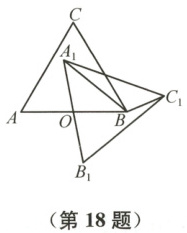 18 如图,已知$\triangle ABC$是边长为4的等边三角形,将它绕着边AB的中点$O$旋转,得到$\triangle A_1B_1C_1$,连接$BA_1$,$BC_1$,则$\triangle BA_1C_1$面积的最大值为