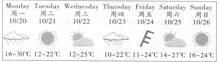 Ⅷ.活动定在下周末,方便居民参与。根据天气预报,补全答句。(15 分)