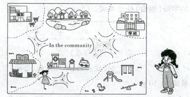 Ⅹ. Lanlan参加了社区举办的“手绘社区地图”比赛,下面是她的作品。看图,判断句子正(T)误(F)。(15分)