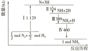 ${N_{2}(g)}$与${H_{2}(g)}$在铁催化剂表面经历如下过程生成${NH_{3}(g)}$