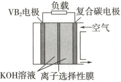 D.电流由复合碳电极经负载、$VB_2$电极、KOH 溶液回到复合碳电极