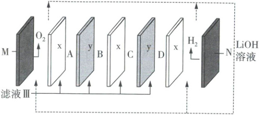 $ mol· L^{-1}$(不考虑${C_{2}O^{2-}_{4}}$水解的影响,溶液混合时忽略体积变化)。(5)“电渗析”的装置如图所示,x、y为离子交换膜,则x为