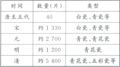 3. 下表是考古学家在埃及福斯塔特挖出的中国陶瓷碎片分布情况。由此可知