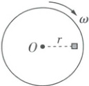 10. ☆如图所示的水平圆盘上,距中心轴$O$为$r$处有一质量为$m$的小物块。经过$t$时间,圆盘的角速度从$0$均匀增大至$\omega_0$时,小物块刚好相对圆盘滑动。已知小物块与圆盘间的动摩擦因数为$\mu$,最大静摩擦力等于滑动摩擦力,重力加速度为$g$,此过程