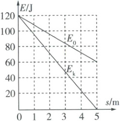 1$\frac{0−120J}{5m−0}$I=24N,则由牛顿第二定律可得F=ma,解得物块上滑的加速度大小a=10m/s²,B正确;由于除重力外其他力对物块做的功等于物块机械能的变化量,而除重力外,物块上滑过程中还受摩擦力和支持力,其中斜面对物块的支持力始终与物块的速度垂直,对物块不做功,所以E。−s图像斜率的绝对值表示物块上滑过程中所受的滑动摩擦力大小,则结合题图可得f=μmgcos30°=l$\frac{60J−120J}{5m−0}$|=12N,解得物块与斜面间的动摩擦因数μ=$\frac{\sqrt{3}}{3}$,D正确。