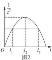 (3)结合题图2分析$l = l_1$和$l = l_3$时对应的小物块通过光电门的时间关系,从而得出两情况物块通过光电门的速度关系,进而根据$l$取不同值时系统机械能守恒的式子即可求解;