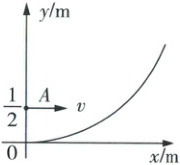 14. (14 分)如图所示,在纸面内建立平面直角坐标系,在第一象限的部分区域分布有方向垂直纸面向里、磁感应强度大小$B = 0.5T$的有界匀强磁场(图中未画出),磁场的左边界与$y$轴重合,磁场的右边界与曲线$y = \frac{1}{2}x^2$(其中$x \geq 0$,单位:m)相切。从$y$轴上的$A$点$(0,\frac{1}{2}m)$沿$x$轴正方向射入许多质量均为$m = 1 × 10^{-6}kg$、电荷量均为$q = 2 × 10^{-4}C$的带正电粒子,不计粒子的重力及相互作用力,已知所有粒子均垂直磁场左边界射出,且速率最大的粒子的轨迹与曲线$y = \frac{1}{2}x^2$相切于$C$点(未画出),取$\pi = 3.14$。求: