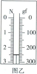 (2) 小明实验时, 其中一只弹簧测力计的示数如图乙所示, 其读数为 N。
