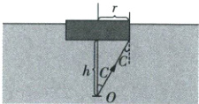 5. 如图所示,一个半径为 $r = 3$ m 的圆柱形软木塞,在其圆心处插上一枚大头针,软木塞浮在液面上。调整大头针插入软木塞的深度,当它露在外面的长度为 $h = 4$ cm 时,从液面上方各个方向向液体观察,恰好看不到大头针。则液体的折射率为
