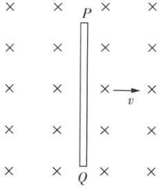 8. 如图所示,一细金属导体棒$PQ$在匀强磁场中沿纸面由静止开始向右运动,磁场方向垂直纸面向里。不考虑棒中自由电子的热运动。下列选项正确的是