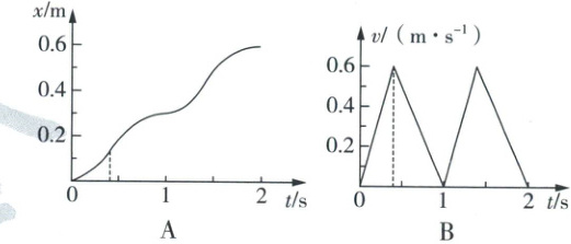 9.AB 运动参量分析+动能+图像分析能力 $x - t$图像斜率代表速度,某段时间内龙舟相对无人机做匀加速和匀减速交替的周期性直线运动,结合题中划桨阶段和未划桨阶段的描述可知0~0.4s内龙舟相对无人机做匀加速直线运动,0.4~1.0s内龙舟相对无人机做匀减速直线运动,之后重复该运动,所以0~0.4s内$x - t$图像的斜率变大,0.4~1.0s内$x - t$图像的斜率变小,之后重复该趋势,A可能正确;$v - t$图像的斜率代表加速度,结合A项分析和题中划桨阶段、未划桨阶段的描述可知,以无人机为参考系,0~0.4s内龙舟相对无人机做匀加速直线运动,0.4~1.0s内龙舟相对无人机做匀减速直线运动,龙舟在0~0.4s内速度由0增加到0.6m/s(划桨阶段),加速度不变,$v - t$图像斜率不变,0.4~1.0s内速度由0.6m/s减为0,加速度不变,$v - t$图像斜率不变,之后重复该趋势,B可能正确。
