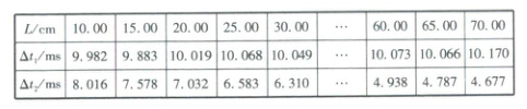 当$L=65.00$ cm时,$v_2=$_______m/s,滑块通过两光电门下降的高度$H_L=$_______cm。