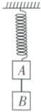8. 如图所示,劲度系数为$k$的轻弹簧上端固定,下端用细线连接质量均为$m$的物体$A$和$B$,系统处于静止状态,重力加速度为$g$,不计空气阻力。$t=0$时刻烧断细线,$t=t_0$时刻$A$第一次上升到最高点。取向下为正方向,$A$的振动表达式为