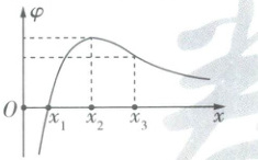 7. 在$x$轴上固定两个点电荷,其电势$\varphi$在$x$轴正半轴的分布情况如图所示,$x_1$、$x_2$、$x_3$为$x$轴上等间距的三个点,现将一电子在$x_1$处由静止释放,下列说法正确的是