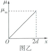 根据题图乙可知$\mu = \frac{\mu_{m}}{2d}x = \frac{3\tan\theta}{2d}x$,小物体从AB中点静止释放,设在BC段滑行$x_{1}$后停下,停下时对应的动摩擦因数为$\mu_{1}$,则$\mu_{1} = \frac{3\tan\theta}{2d}x_{1}$,小物体从释放到静止过程,由动能定理得$mg · (\frac{1}{2}d + x_{1})\sin\theta - \frac{1}{2}\mu_{1}mg\cos\theta · x_{1} = 0$,解得$x_{1} \neq \frac{1}{2}d$,D错。