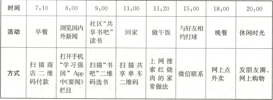 (1) 互联网深刻影响日常生活,从饮食、学习到出行、社交,网络技术的应用贯穿一天,带来便捷高效的体验。