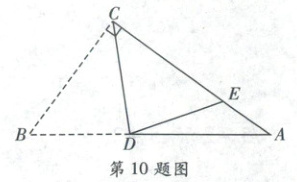 10. 右侧扫码·视频讲解 如图,在$ Rt\triangle ABC$中,$\angle ACB=90°$,$D$是$AB$上一点,将$\triangle BDC$沿$CD$折叠,点$B$的对应点$E$恰好落在$AC$边上。已知$BC=6$,$AE=2$,则$DE$的长为(