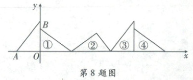 8. 右侧扫码·视频讲解 如图,在平面直角坐标系中,已知点$A(-3, 0)$,点$B(0, 4)$,对$\triangle OAB$连续旋转,依次得到①,②,③,④…,那么旋转$26$次的三角形的直角顶点的坐标为(