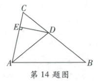 14. 右侧扫码·视频讲解 如图,$\triangle ABC$中,$AD$平分$\angle BAC$,$AD = BD$,$DE\perp AC$于点$E$,$AE = 2\sqrt{5}$,$BD = 6$,则点$D$到$AB$的距离为