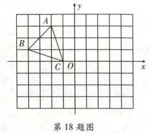 18. (5 分)如图,在平面直角坐标系中,$\triangle ABC$的三个顶点的坐标分别为$A(-2,3)$,$B(-4,1)$,$C(-1,0)$。