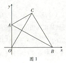 (1) 如图 1,在平面直角坐标系中,$A(0,2\sqrt{3})$,$B$分别是坐标轴上的两点,当$\angle ABO = 30°$时,将$\triangle AOB$沿边$AB$翻折得到$\triangle ACB$,点$O$的对应点为$C$,则点$C$坐标为