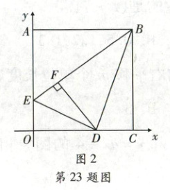 ;(2) 如图 2,长方形$OABC$位于平面直角坐标系中,点$A(0,17)$,$C(16,0)$,$E(0,5)$分别位于两个坐标轴上,$D$是$OC$上一动点,将$\mathrm{Rt}\triangle ODE$沿$DE$翻折得到$\triangle FDE$,当点$F$落在$BE$上时,试求$BD$所在直线的函数表达式;