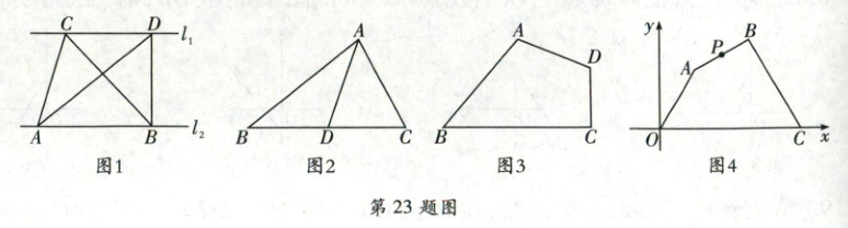 (2) 如图3,已知四边形$ABCD$,请画图在射线$BC$上找出一点$E$,使$S_{ 四边形ABCD}$与$S_{\triangle ABE}$相等,并说明理由;