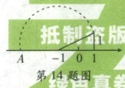14.$-1-\sqrt{5}$【点拨】本题考查勾股定理,实数与数轴,根据勾股定理可求出圆的半径,进而由点$A$的位置,确定点$A$所表示的数。