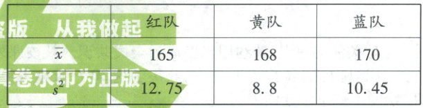 [解析]由表知:黄队身高的方差最小,$\therefore$三支仪仗队中身高最整齐的是黄队。故答案为黄。