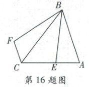16. 右侧扫码·视频讲解 如图,在$\triangle ABC$中,$AB = AC$,$E$是边$AC$上一点,连接$BE$,在$BC$的左侧作$CF // AB$,且$CF = AE$,连接$BF$。若$AC = 10$,$BC = 12$,则四边形$EBFC$的面积为