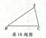 18. (5 分)实践与操作:如图,已知$\triangle ABC$,请用尺规作图法,在边$AC$上求作一点$P$,使$S_{\triangle PBC} = \dfrac{1}{2}S_{\triangle ABC}$(保留作图痕迹,不写作法)。