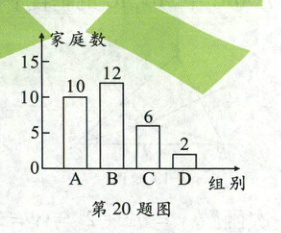 20. (7 分)水资源问题是全球关注的热点,节约用水已成为全民共识。某校课外兴趣小组想了解居民家庭用水情况,他们从一小区随机抽取了$30$户家庭,收集了这$30$户家庭去年$7$月份的用水量,并对这$30$个数据进行整理,绘制了如下统计图表: