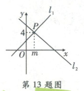 13. $\begin{cases}x = 1 \\y = 4\end{cases}$ [点拨]本题考查一次函数与二元一次方程组的关系。