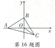 16. 右侧扫码·视频讲解 如图,在平面直角坐标系$xOy$中,点$A$在$x$轴上运动,$B(0,4)$,以$AB$为直角边,$B$为直角顶点作等腰直角$\triangle ABC$,连接$OC$,则$BC + OC$取最小值时点$A$的坐标为