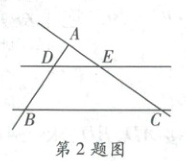 2. 如图, 已知 $BC // DE$, $BD \bot EC$ 于点 $A$, 若 $\angle ACB = 35 ^ { \circ }$, 则 $\angle ADE$ 的度数是(